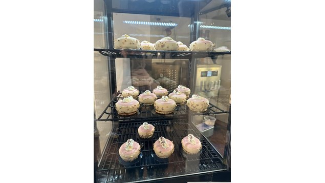Så er der ny ugens kage. I denne uge er det en mandelbund, fersken indlæg og rabarber mousse