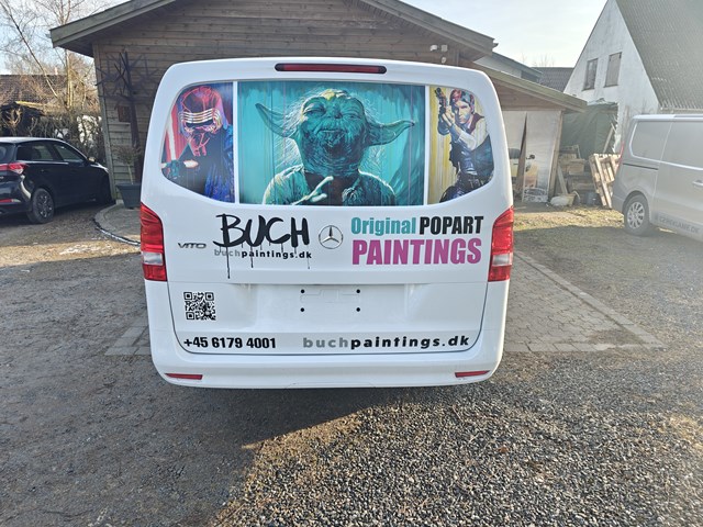 Hos C2 Reklame har de i samarbejde med Allan Buchs sørget for at hans Mercedes Vito ikke blot er et køretøj, men et spektakulært, rullende lærred. Bilens dekoration er skabt med fokus på kunstnerens karakteristiske stil og fungerer som et blikfang i gadebilledet. Med kombinationen af foliedesign og popart bliver bilen en visuel oplevelse, der vækker opmærksomhed og understreger Allan Buchs kunstneriske identitet.
