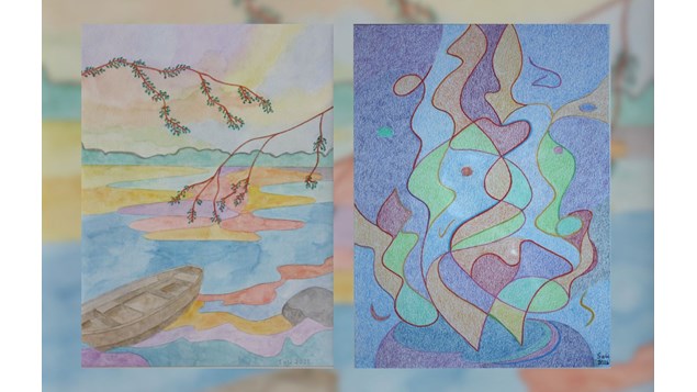 Den talentfulde kunstner Soli Solange Madsen præsenterer sine nyeste kreationer, der spænder over forskellige teknikker og udtryk. Disse værker omfatter “Sommerlys”, en livfuld akvarel, og “Glade hjerter”, en farverig pastel på japansk papir.